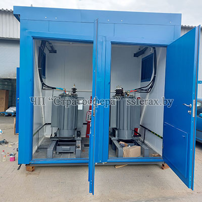 Контейнерное двухсоставное здание для нужд аэраторной станции очистки сточных вод.